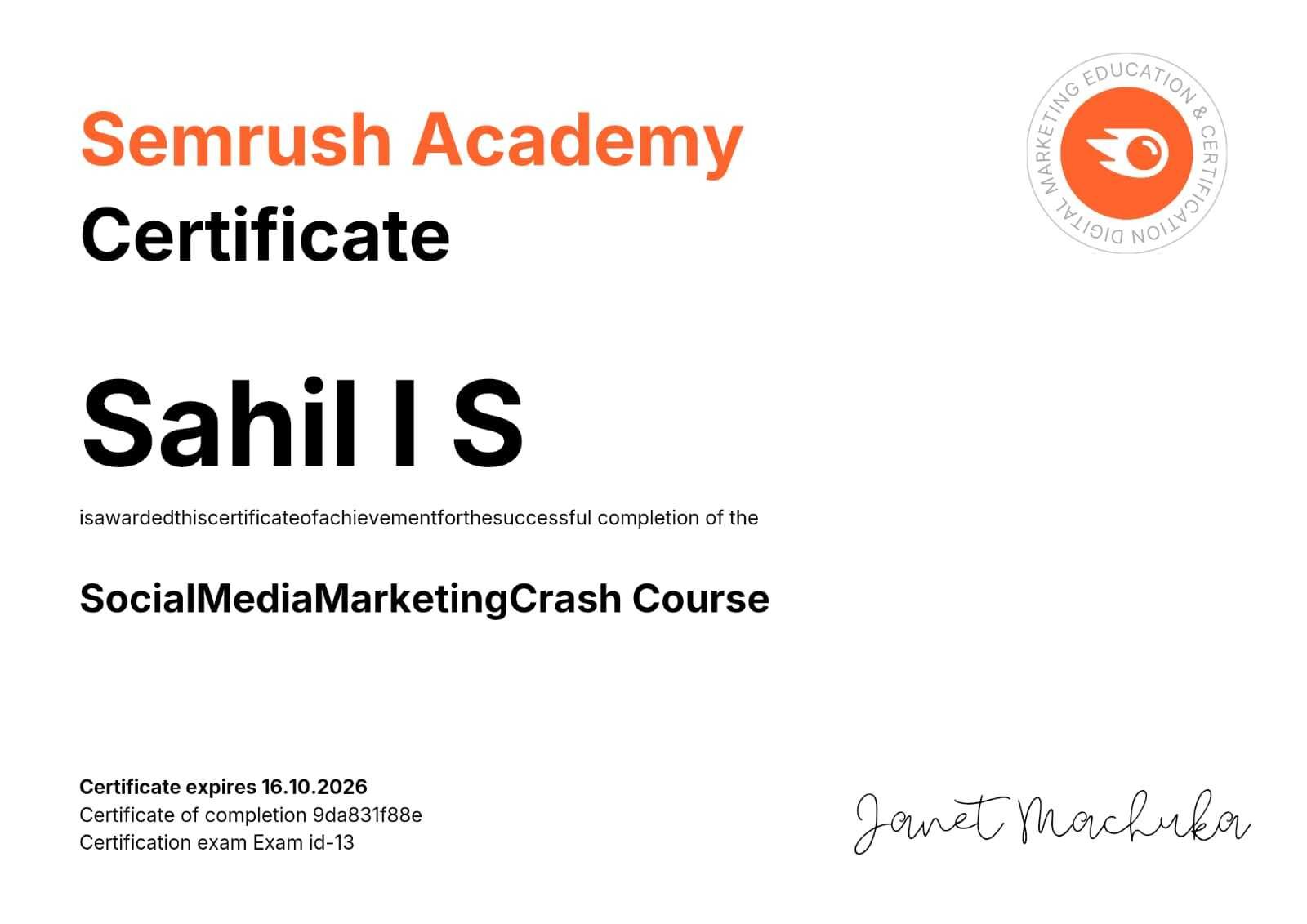 SEMRUSH ACADEMY CERTIFICATE